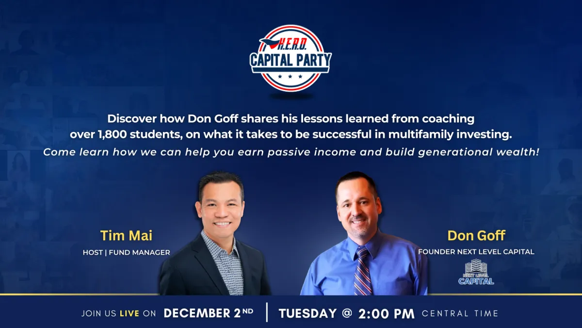 “The” Mentor behind 100's of Multi-Family Millionaires, totaling over $5 Billion in acquisitions. His personal portfolio is over $800,000,00 AUM and he has raised over $100,000,000 for these deals.