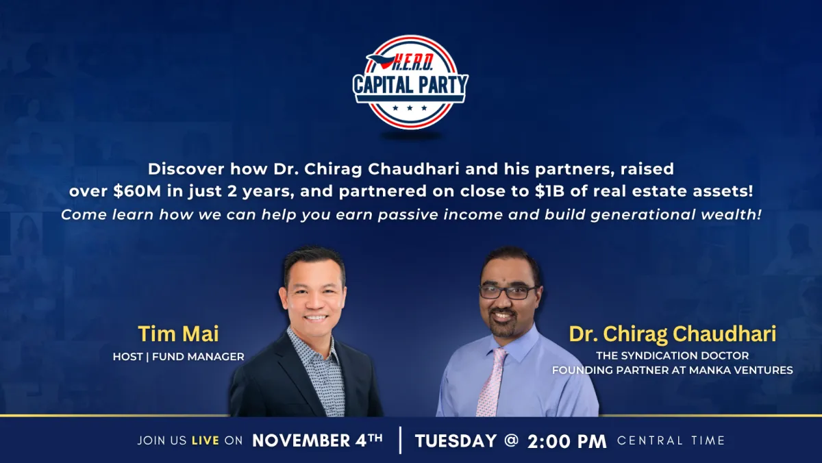 Vinney Chopra went from $7 to over $650M AUM. He has 6500 units of multifamily, senior assisted living, and hospitality and raised over $200M for these deals, In the last 30 days, he has raised over $24,000,000.